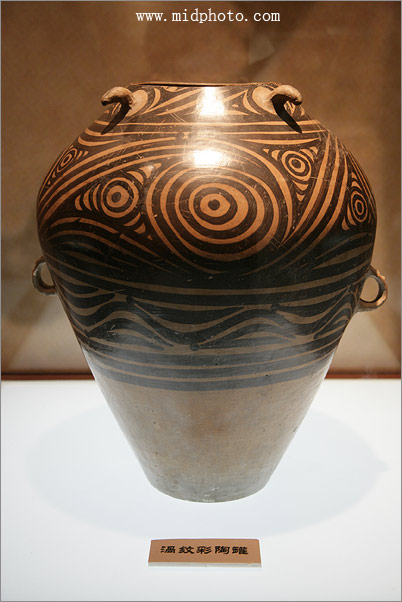 照片号xv8h9570。涡纹彩陶罐。疑似太阳崇拜。马家窑文化(约5000年前)。