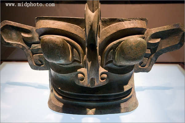照片号xv8h9615。古蜀国(约公元前16世纪—公元前11世纪),突目铜面具,高85.4厘米 1986年四川广汉三星堆出土