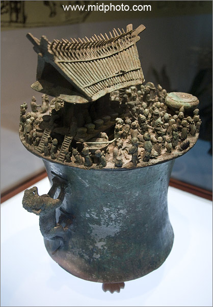 照片号xv8h9799。祭祀场面铜铸贝器(存钱罐)西汉,云南出土。滇人的立体清明上河图