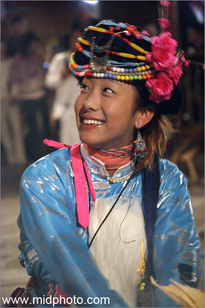 我很奇怪,不至于只有一个美女吧?长期旅居泸沽湖的老驴说美女还是有的,但现在很多摩梭小妹十三四岁就外出打工去了,所以美女不多见,本地大妈较多。云南以及全国很多旅游点都有所谓正宗少数民族歌舞表演,虽然很多是假的,但也有些是真少数民族,比如这些外出歌舞挣钱的摩梭妹妹。